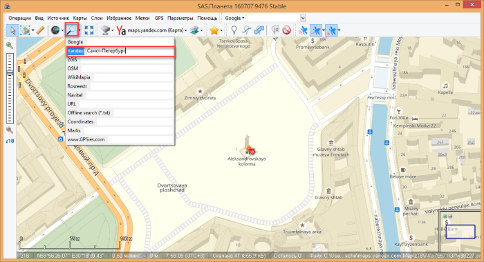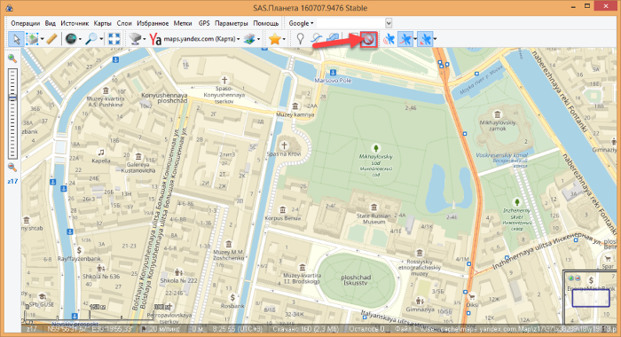 SAS Planet — это просмотрщик снимков в высоком разрешении от сервисов ЯндексКарты/eAtlas/GoogleMaps/Космоснимки/YahooMaps/Virtual Earth и аналогичных. При этом в распоряжении юзера остаются все загруженные изображения, которые, в дальнейшем, можно просматривать автономно — без подсоединения ПК к интернету. Особенность программы — отличная скорость работы, в том числе и на слабых компьютерах. По этой ссылке вы можете скачать SAS Планета на русском языке.