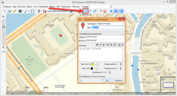 Чтобы проставить метку на каком-либо месте, задействуйте одноименный инструмент.